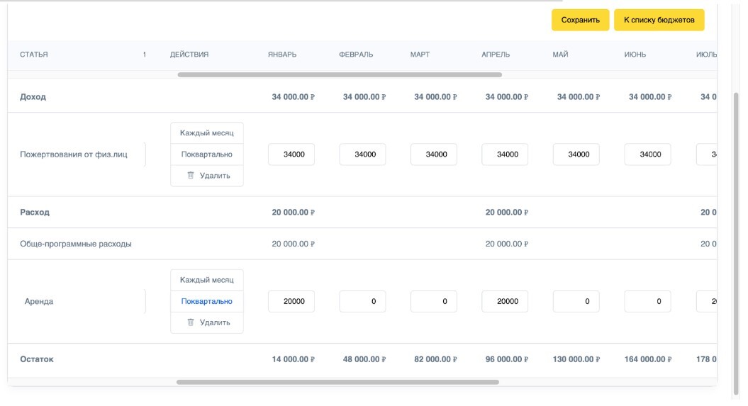 С этим учётом, мы рекомендуем составлять отдельные бюджеты: по отдельным проектам, отдельно доход/расход и т.д.